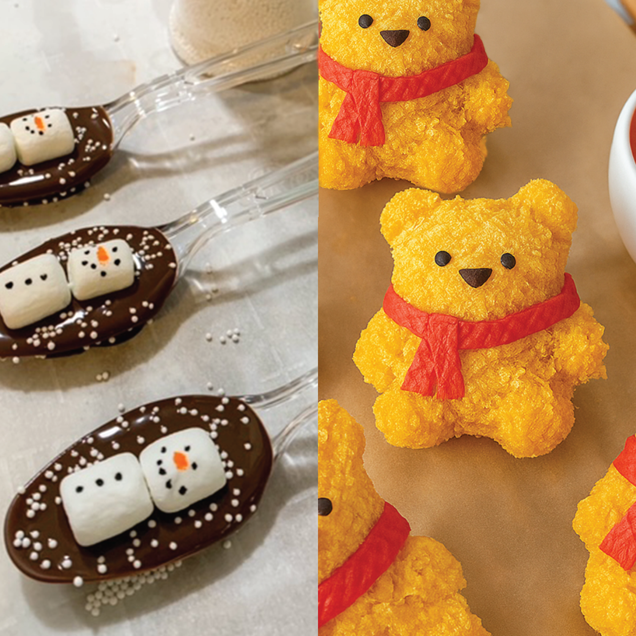 - Wrap the pancake strips around the bear’s neck, then add the face using black mayo in a piping bag.