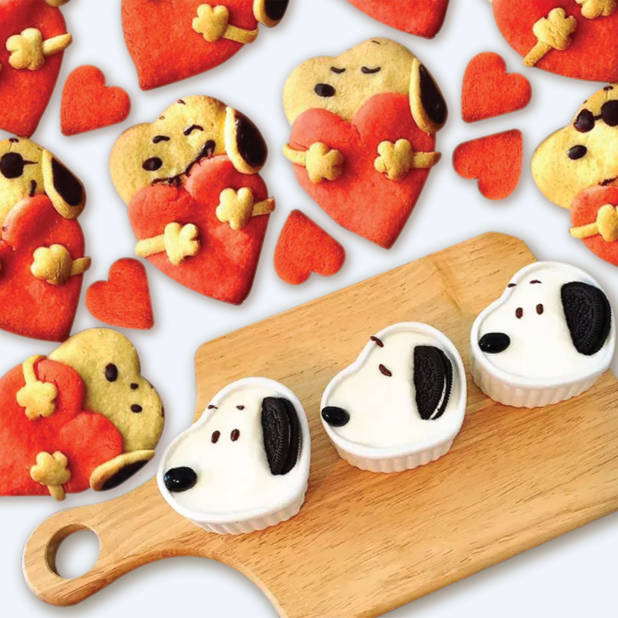 - Add 2 arms & 1 ear on each Snoopy doughs.