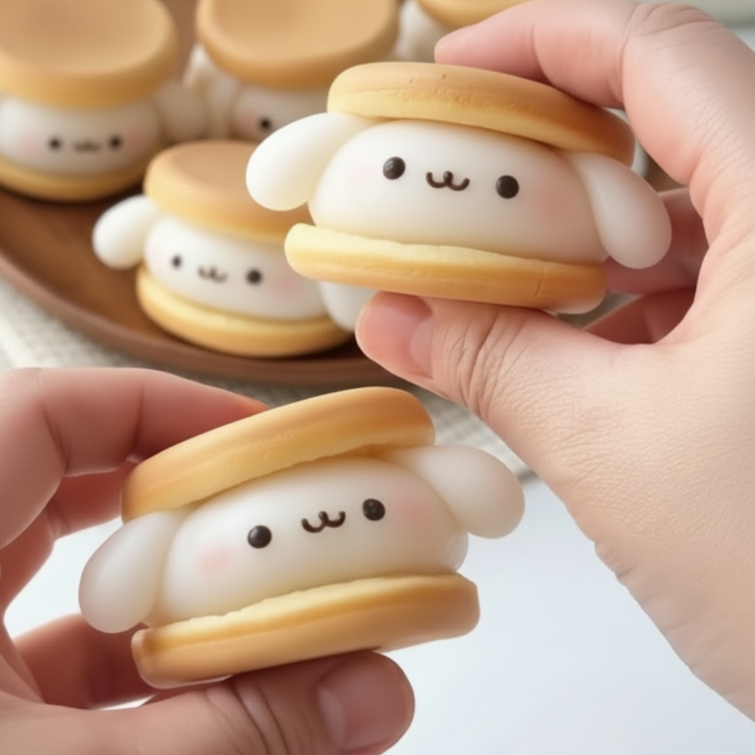 - Make ears using the remaining mochi dough, then stick onto the bunny head.