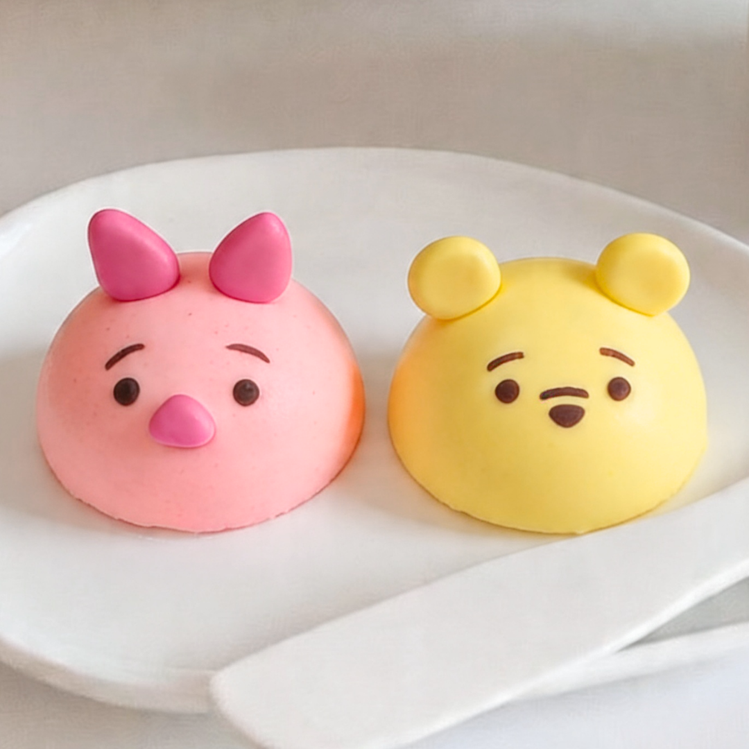 Pooh & Piglet Inspired Dome Cakes are adorable sweet treats loved for their soft, fluffy texture and charming character designs. With a little creativity, simple dome cakes can be transformed into cute Pooh and Piglet faces, turning them into delightful and heartwarming treats that are just as fun to decorate as they are to enjoy!