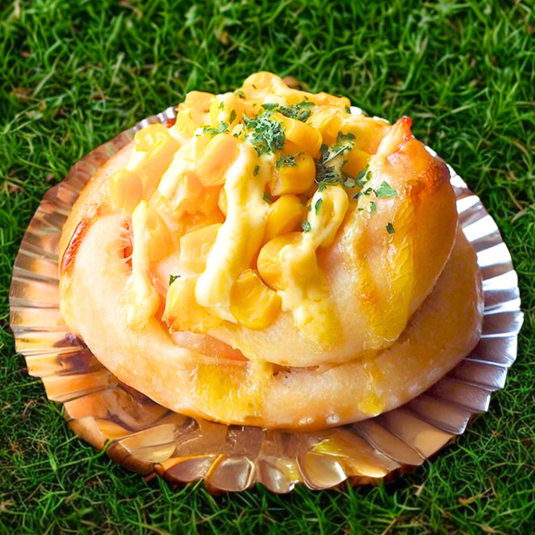 That mayo corn bun is a popular Asian bakery treat made with soft fluffy bread, filled with sweet corn kernels mixed with creamy mayonnaise, sometimes topped with cheese for extra flavor.